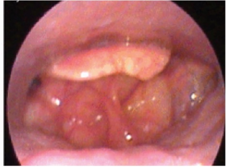 Tumore benigno peduncolato plica Faringo-Epiglottica