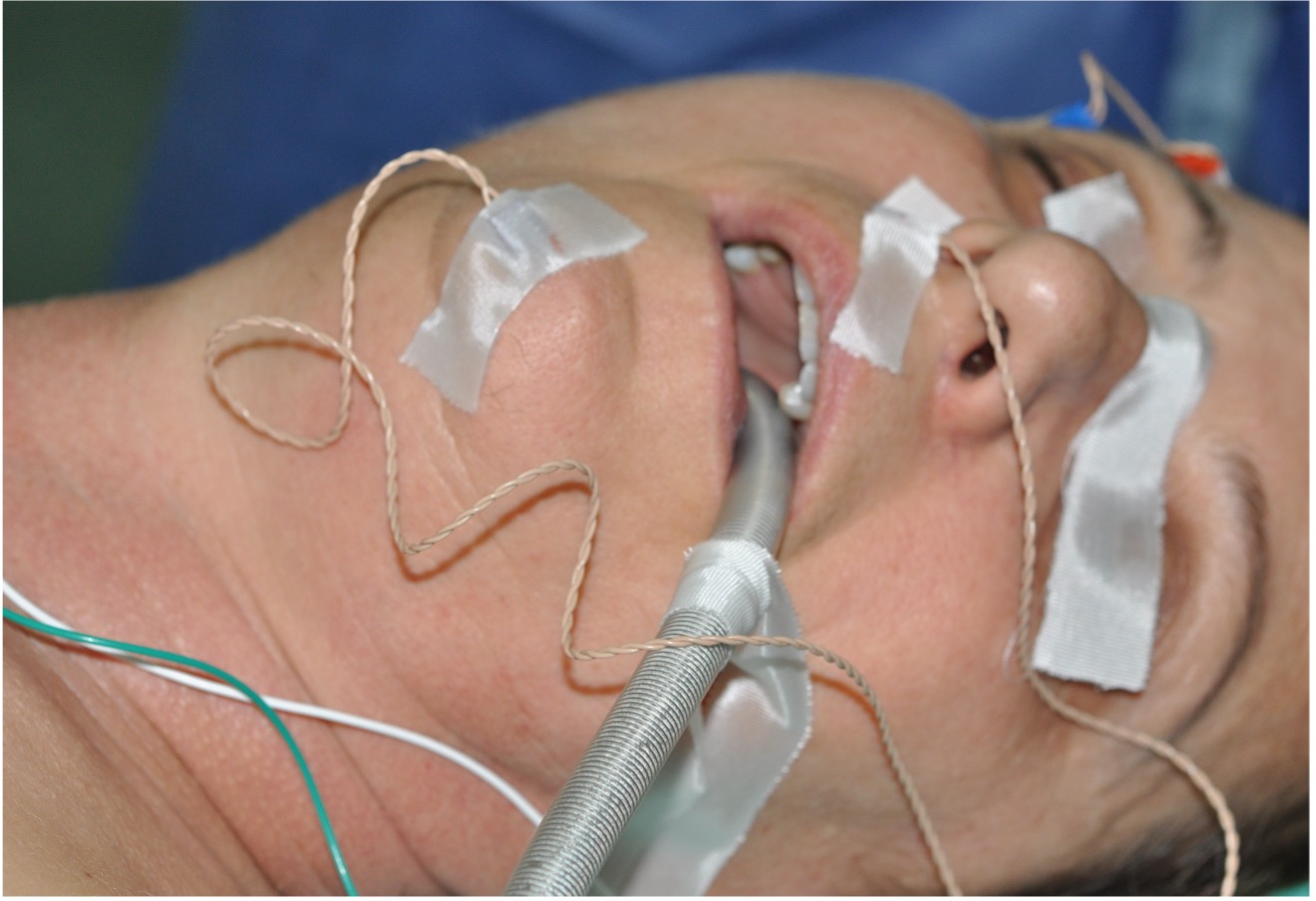 Copie di ago elettrodi sono stati posizionati sotto il derma nei muscoli frontale, orbicolare dell’occhio, orbicolare della bocca e muscolo del mento per monitorare le branche del VII nc temporale, zigomatica, buccale e del marginalis mandibulae.